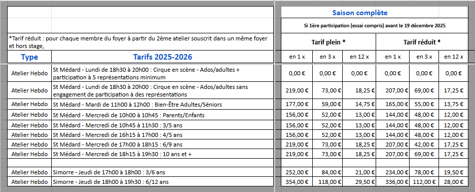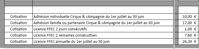 Rappel ! La licence FFEC et l’adhésion sont obligatoires pour toute inscription Attention ! règlement en ligne par CB Règlement en 3 fois échéance 1 : le jour de la transactionéchéance 2 : 5 décembreéchéance 3 : 5 janvier Règlement en 12 foisà condition que la transaction soit réalisée avant le 27 octobre échéance 1 : le jour de la transaction échéances suivantes : les 28 de chaque mois de octobre à août